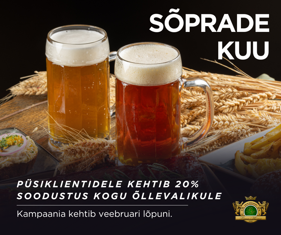 Tule meiega sõbralikku õhkkonda nautima!Kutsume teid nautima meie parimat elavat õlut 20% SOODUSTUSEGA terve veebruari kuu!