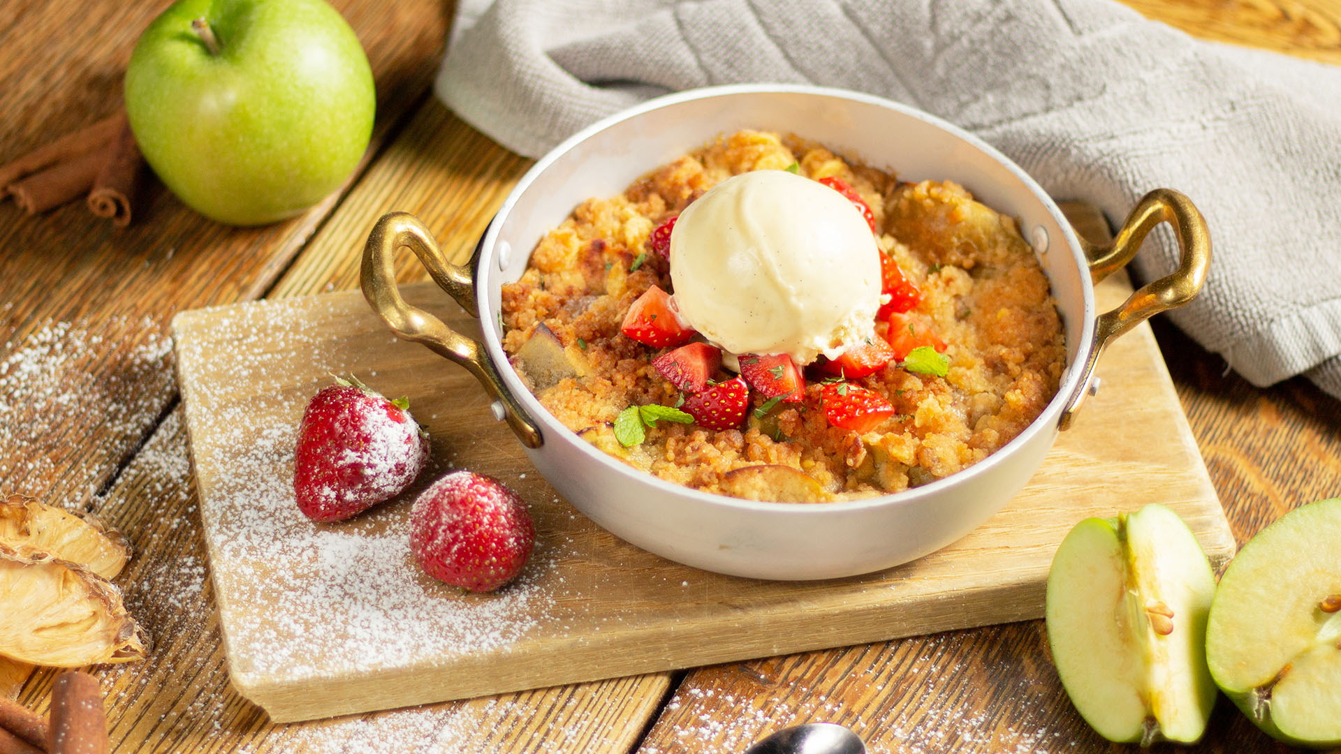 kartulistruudli, marineeritud jõhvikate ja Demi-glace kastmega